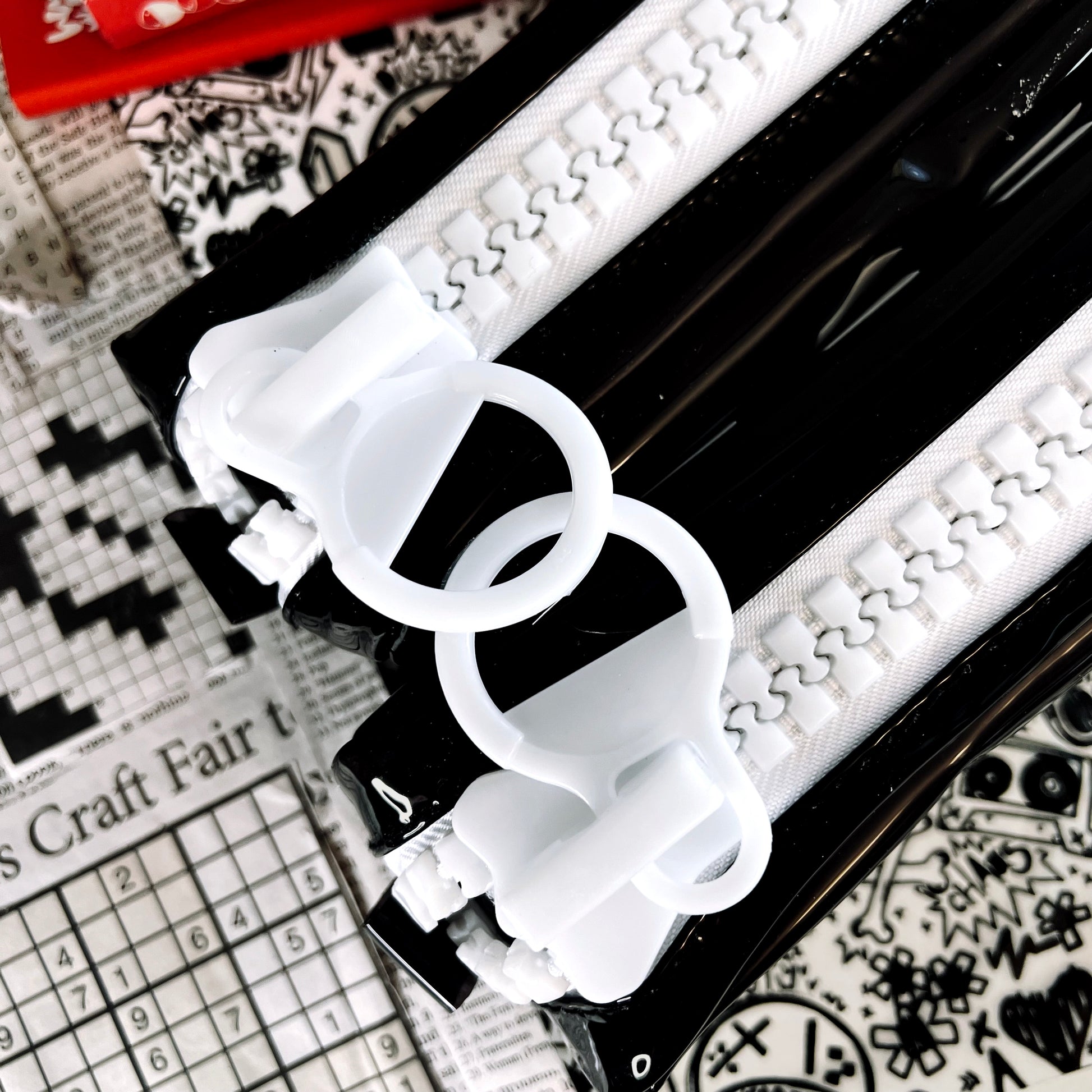 pvc material with an extra chunky zipper. made with permanent vinyl.