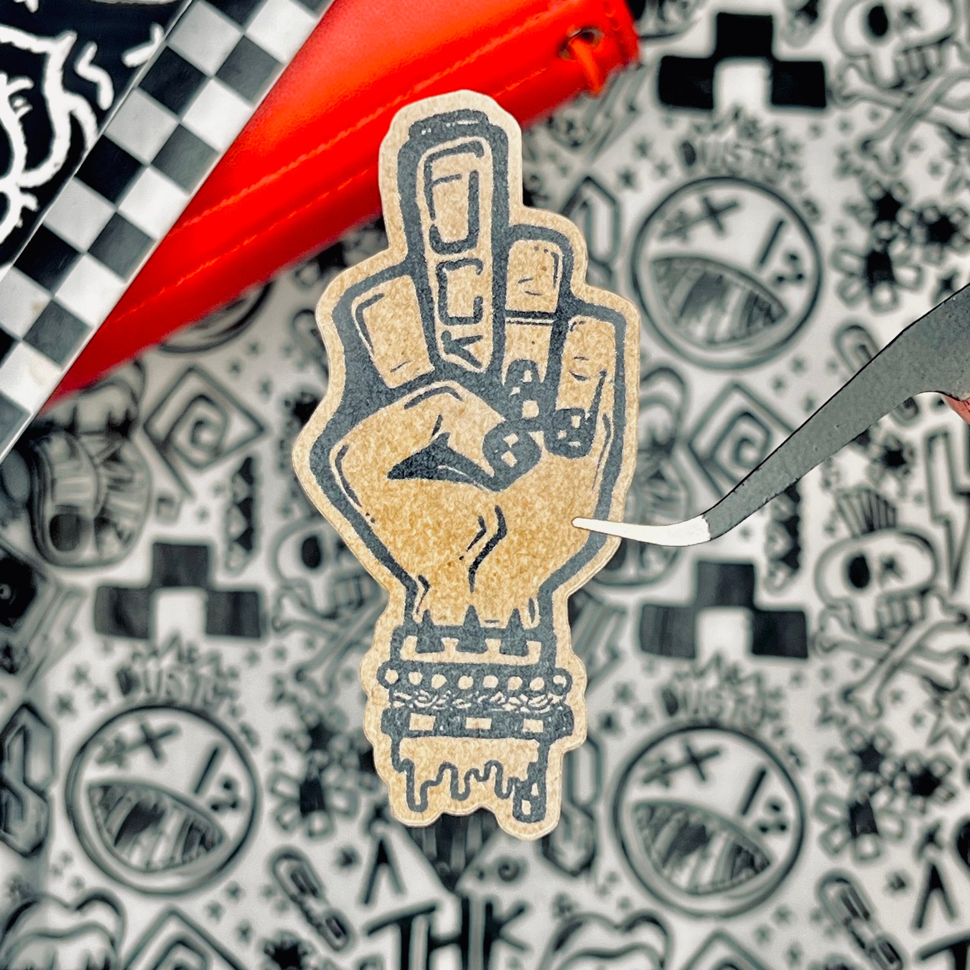 FUCK kraft die cut. 3" uncoated kraft die cut sticker.