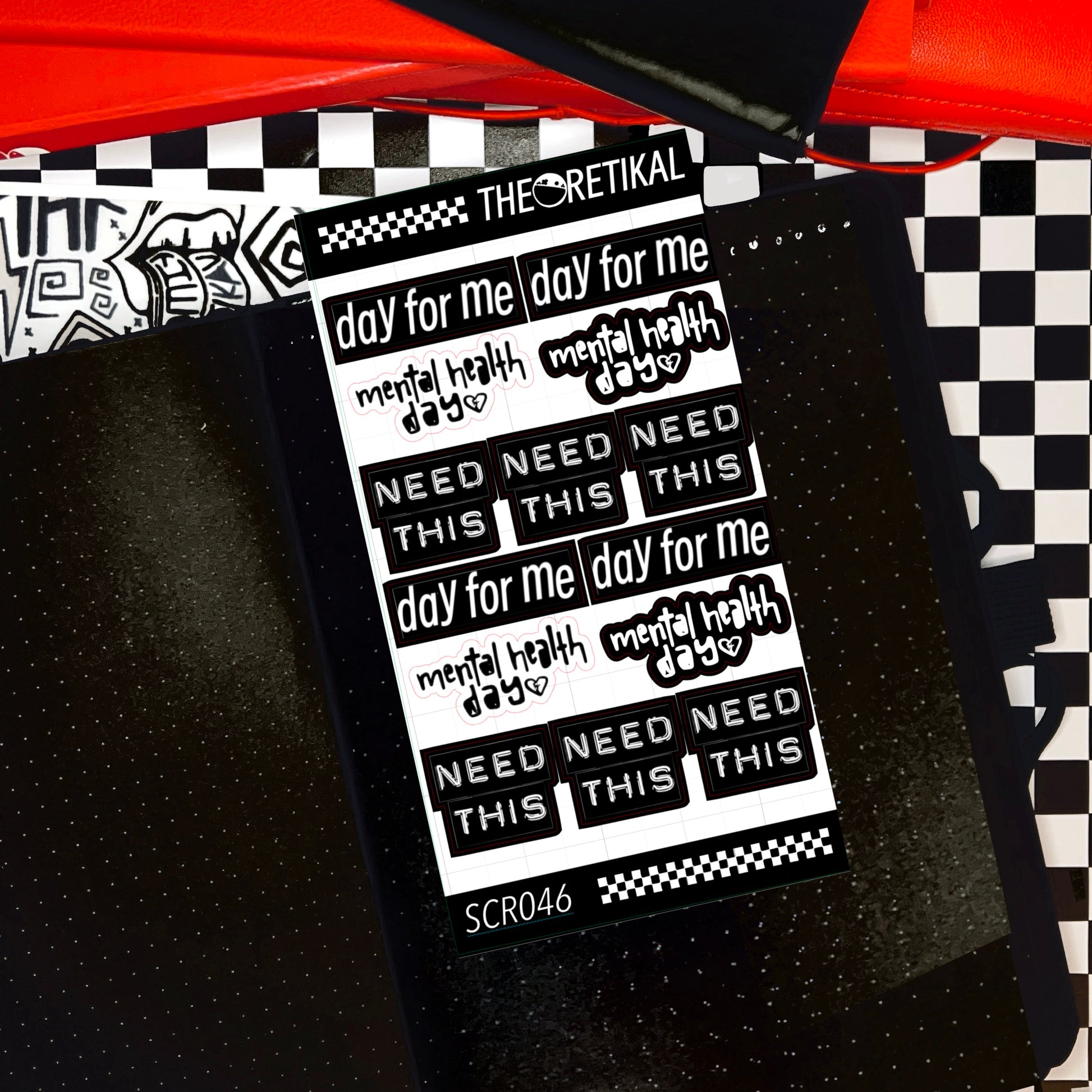 x various size and text scripts with black out and white outline.
